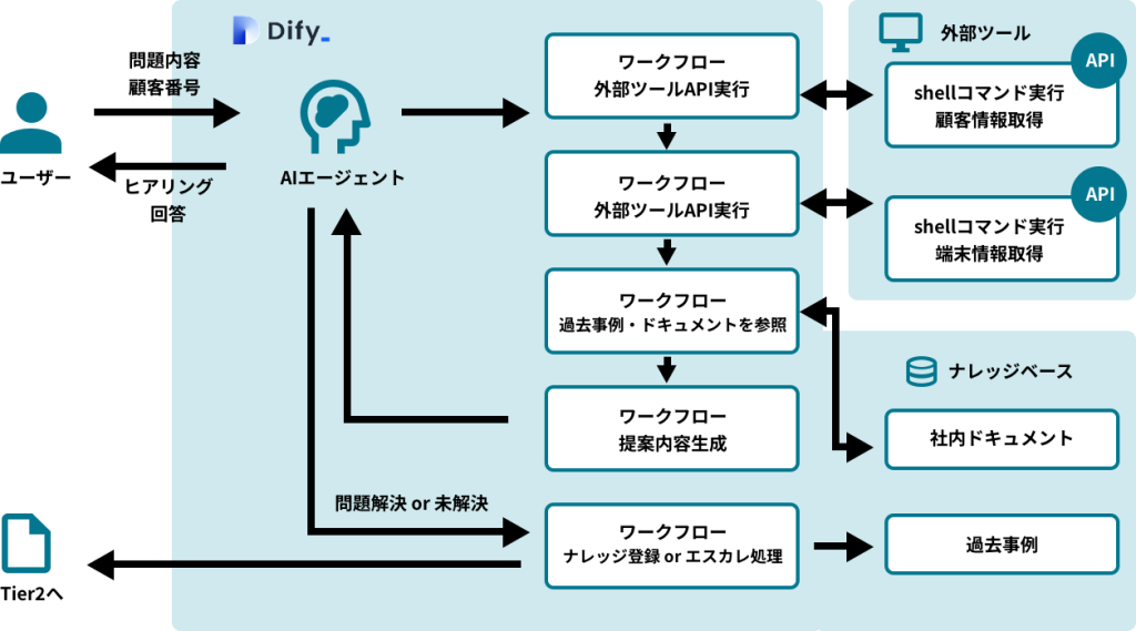 ・AIで解決できない(過去に類似の例がない)場合、上位にエスカレーションする